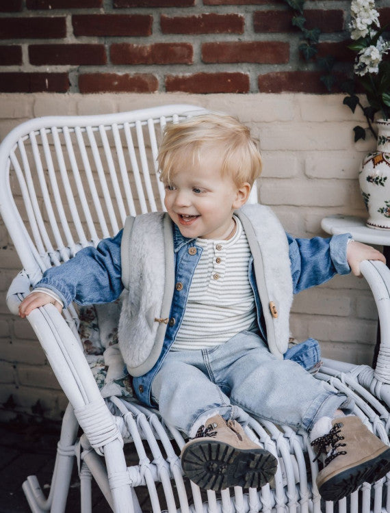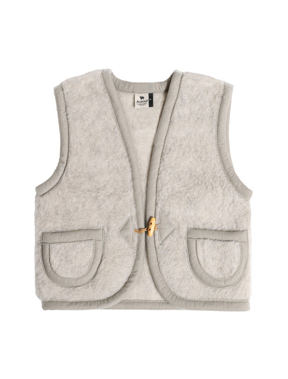 Deze leuke bodywarmer is gemaakt van pure wol en houdt je heerlijk warm, ideaal voor ongehinderd spelen en ravotten. Het gilet is niet gevoerd. Maat XXS een XS hebben geen zakjes, de grotere maten wel.