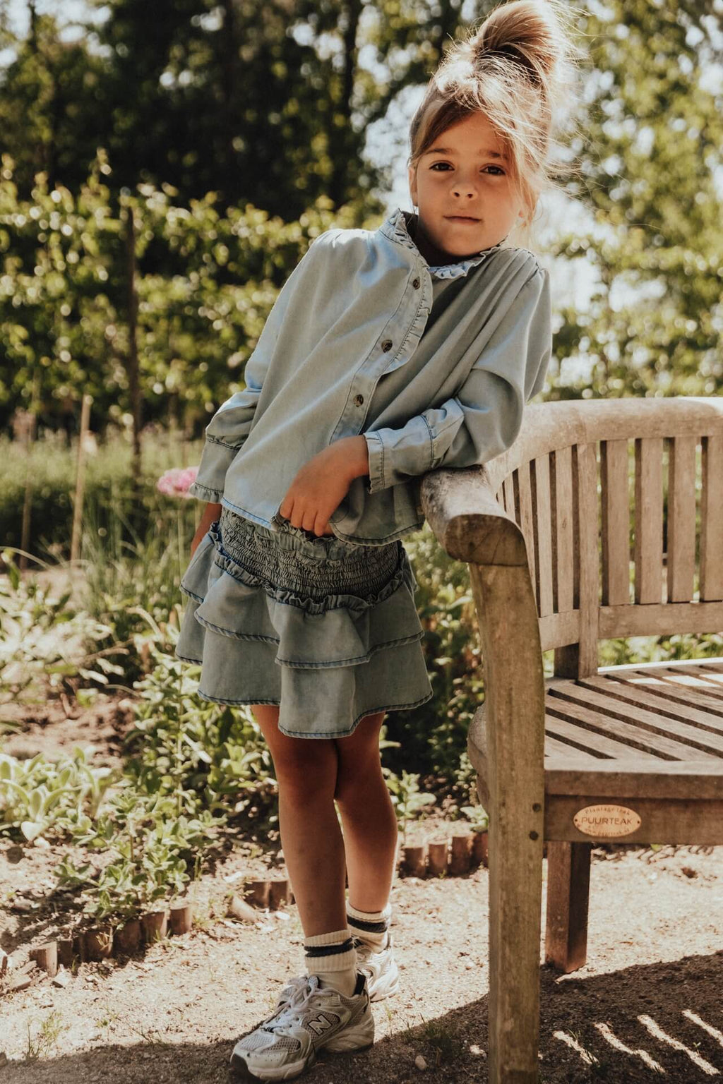 Deze lichtblauwe blouse met subtiele ruffle-details heeft een frisse, verfijnde uitstraling. De zachte denimlook en luchtige stof zorgen voor een comfortabele fit en een tijdloze look. Perfect voor zowel alledaagse outfits als speciale momenten. Luchtige denim look stof. Hoge kraag met kleine ruffle. Knoopsluiting aan de voorkant. Heerlijke draagcomfort voor zowel school, speel of nette gelegenheden.